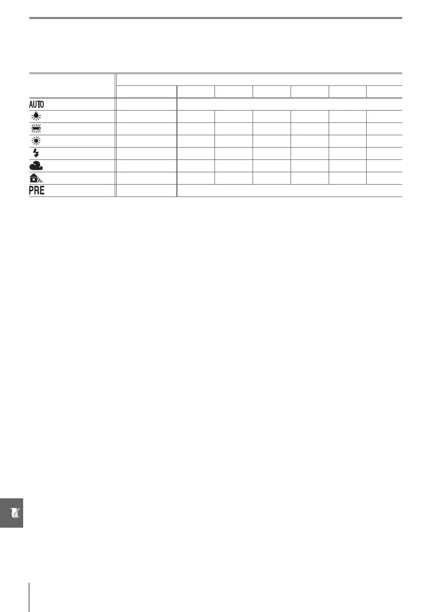 Approximate color temperatures for each white balance setting are given below (values