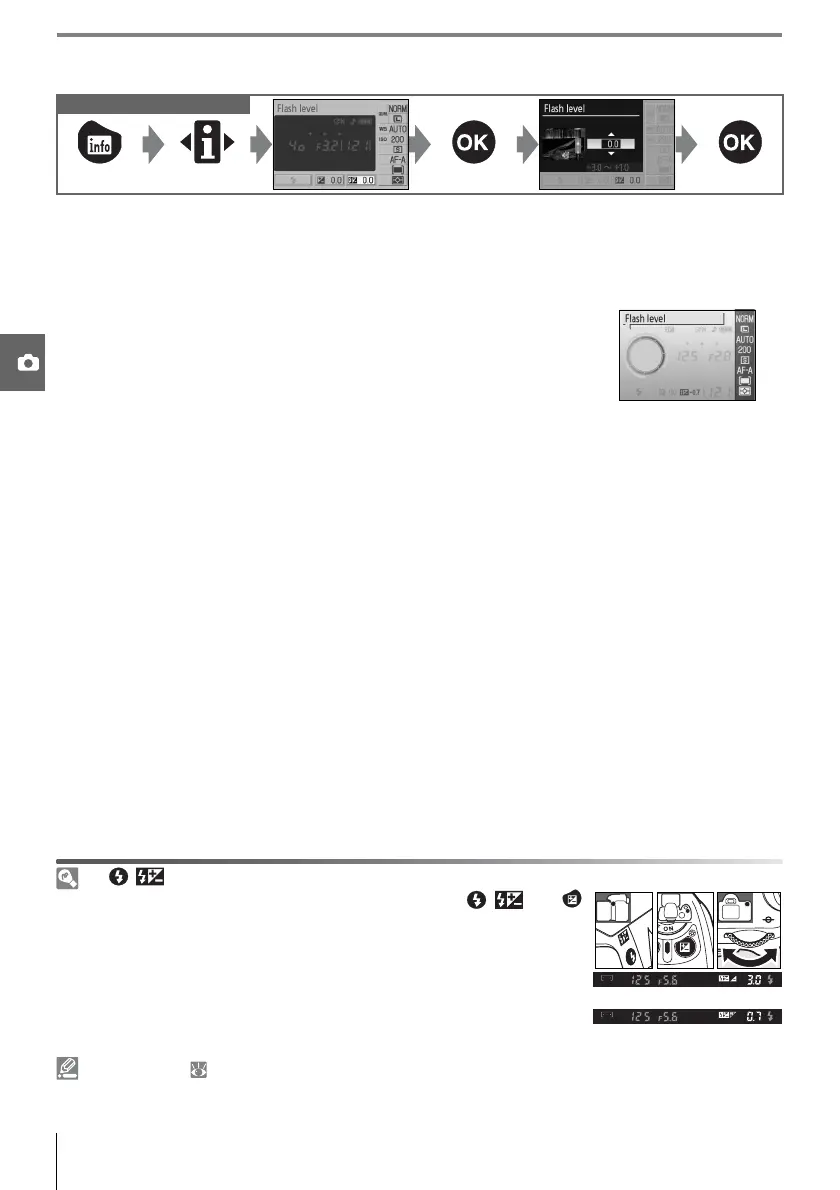 Flash compensation (available only in P, S, A, and M modes) is used to alter flash output by