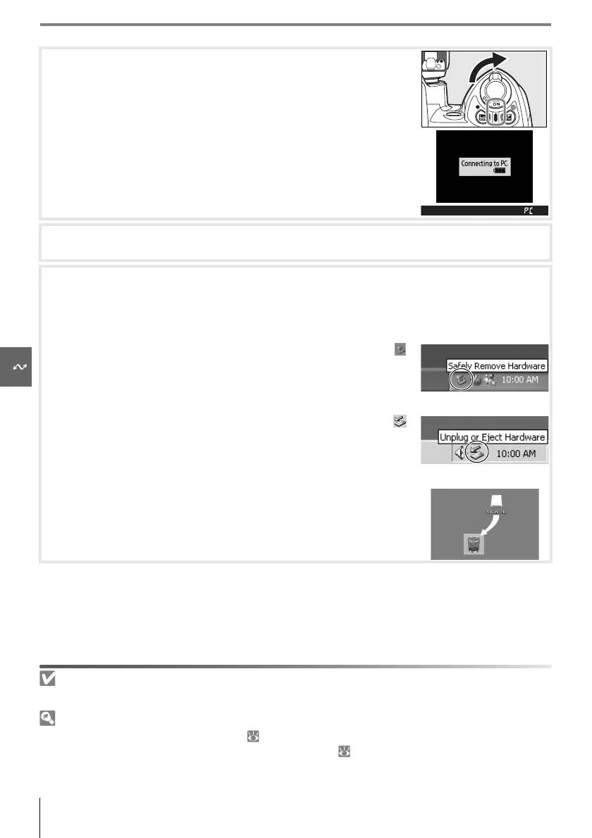 If PTP is selected for USB, the camera can be turned off and the USB cable discon-