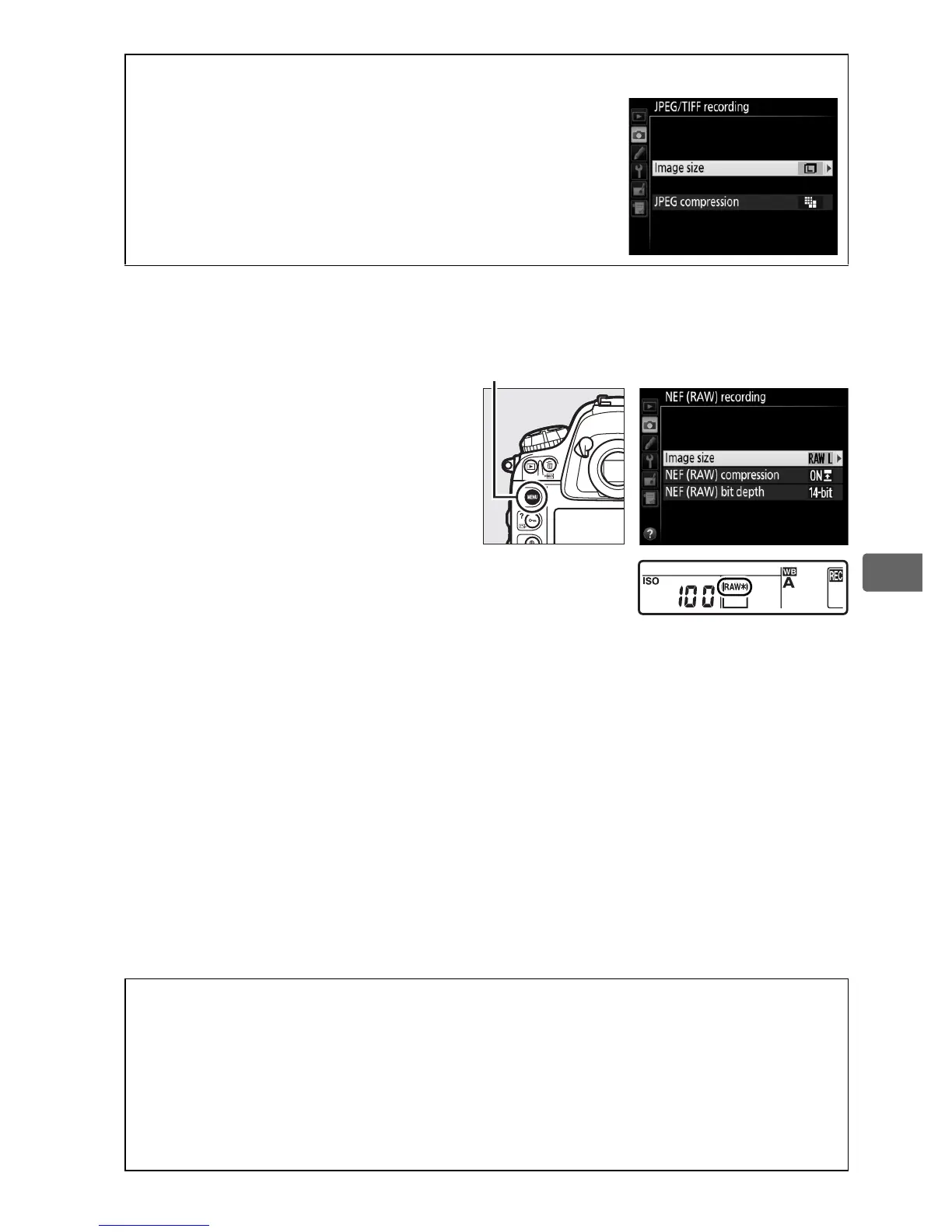 selected for NEF (RAW) compression and NEF (RAW) bit depth in the