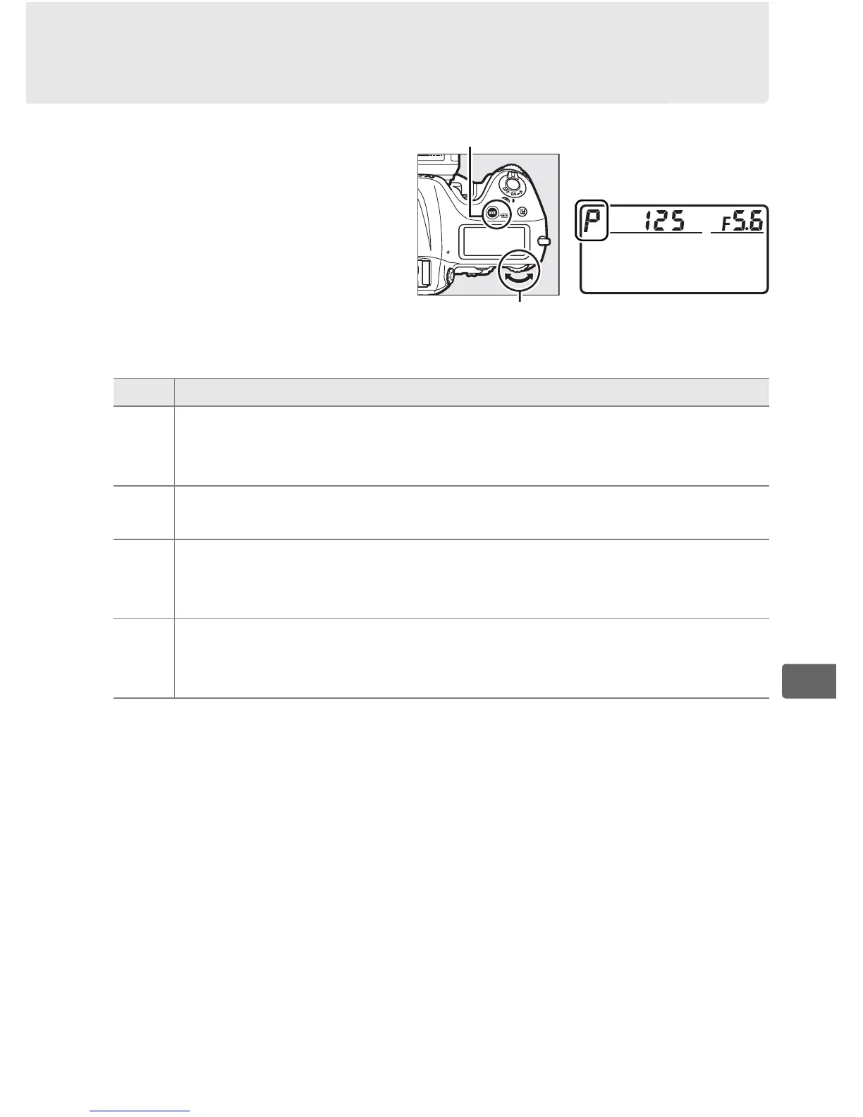 Programmed auto (0 127): Camera sets shutter speed and aperture