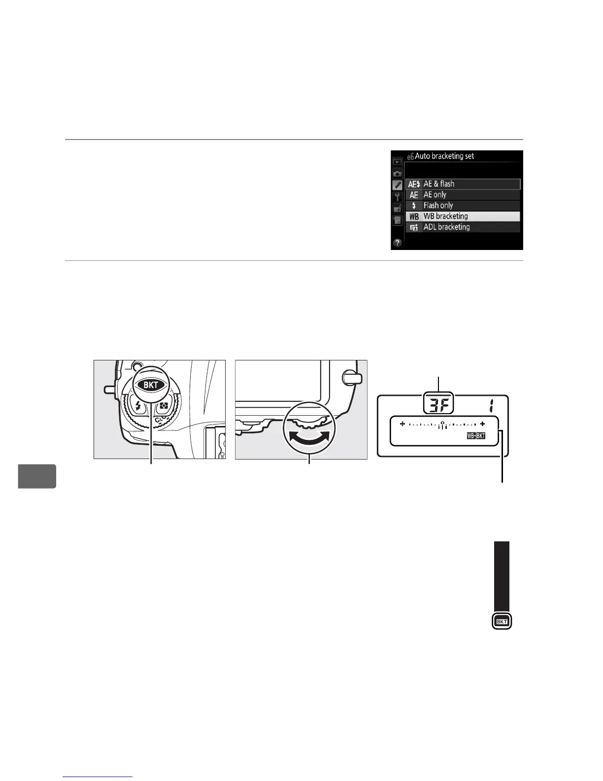 1 Select white balance bracketing.