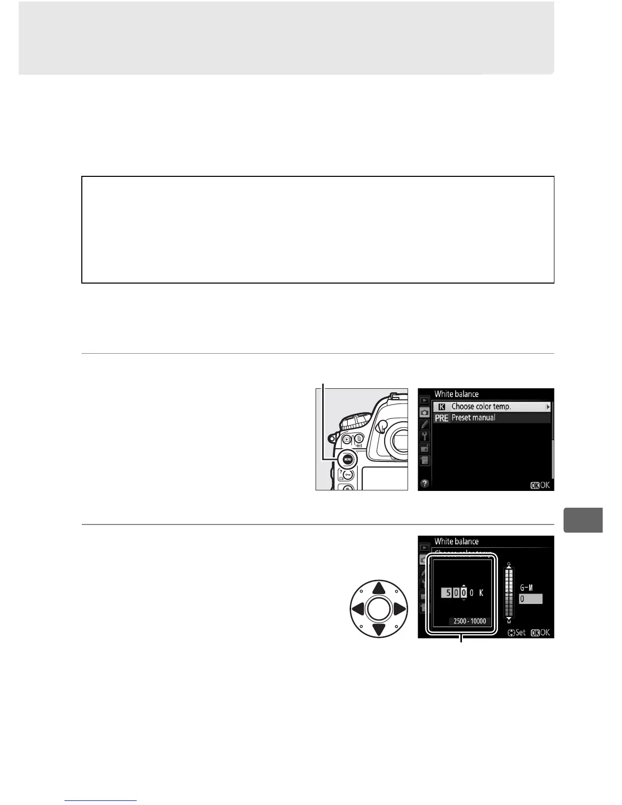 When K (Choose color temp.) is selected for white balance, color