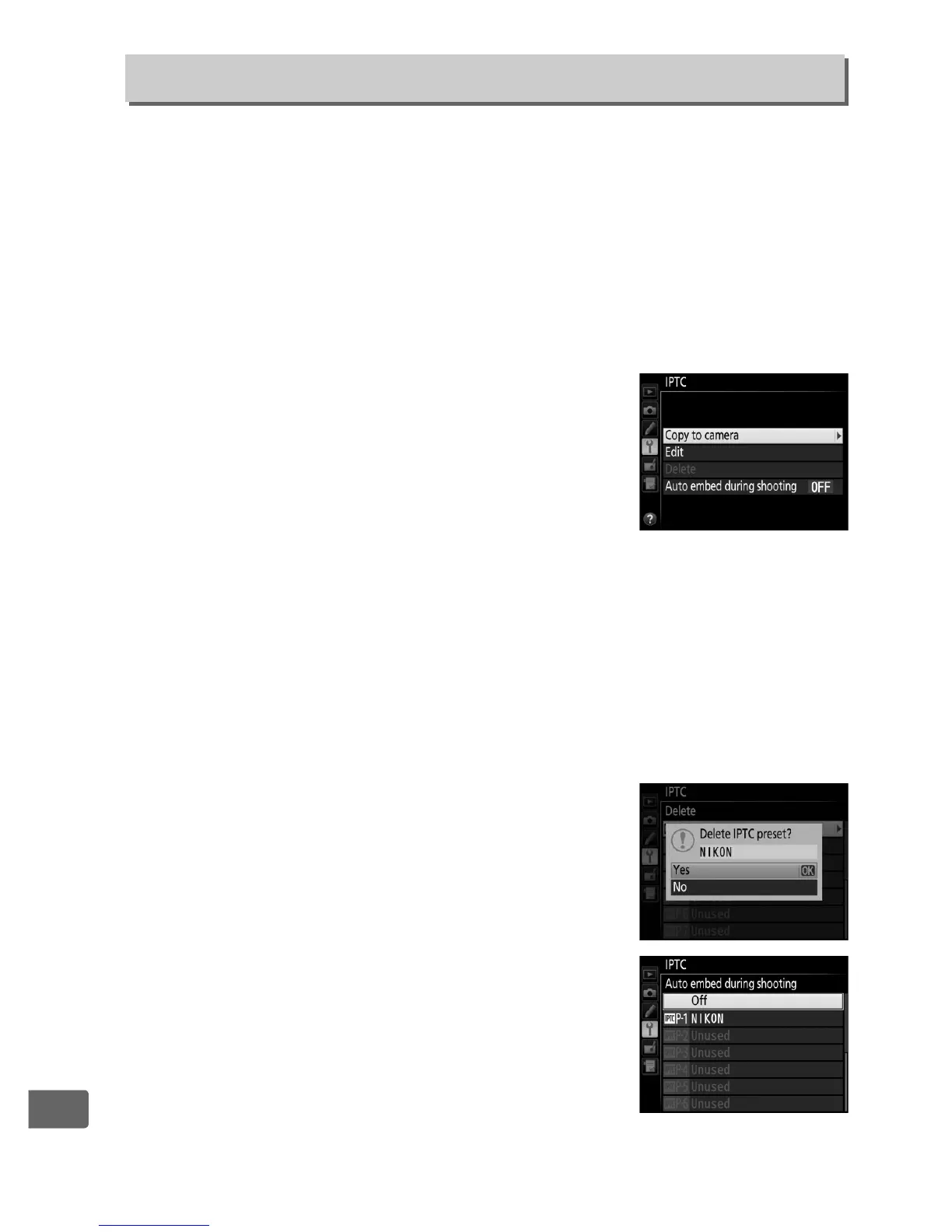 card slot and the options in the IPTC menu used to copy presets to