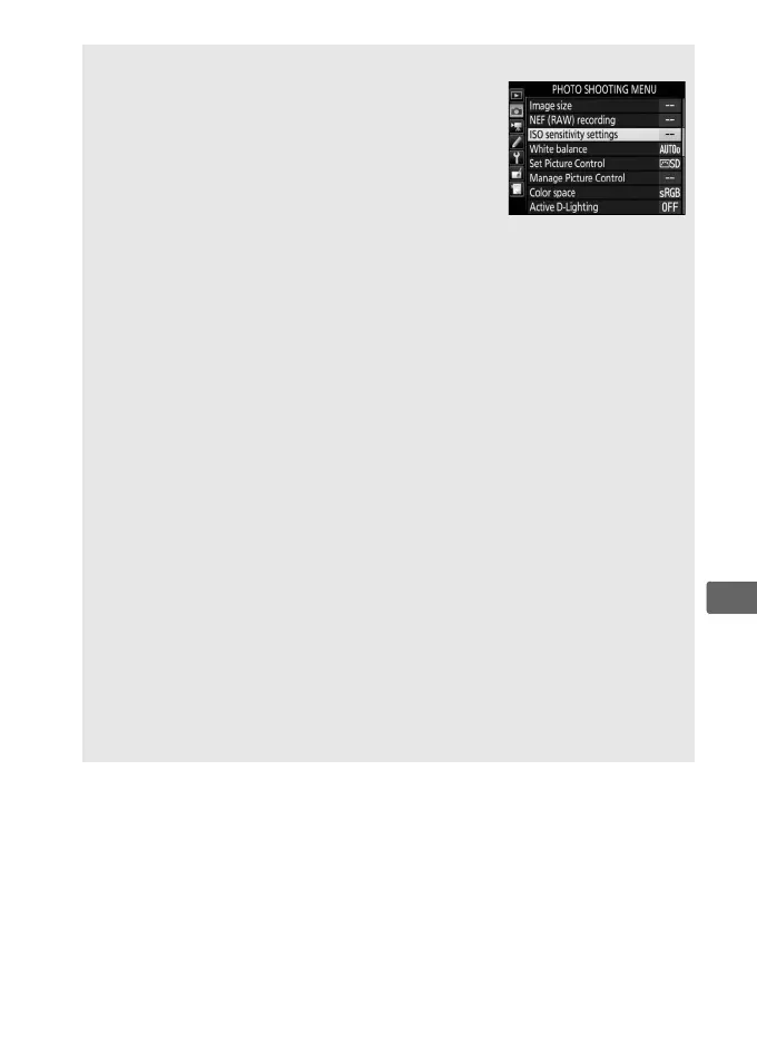 to reduce noise at high ISO sensitivities, see pages 314 (photos) and 320