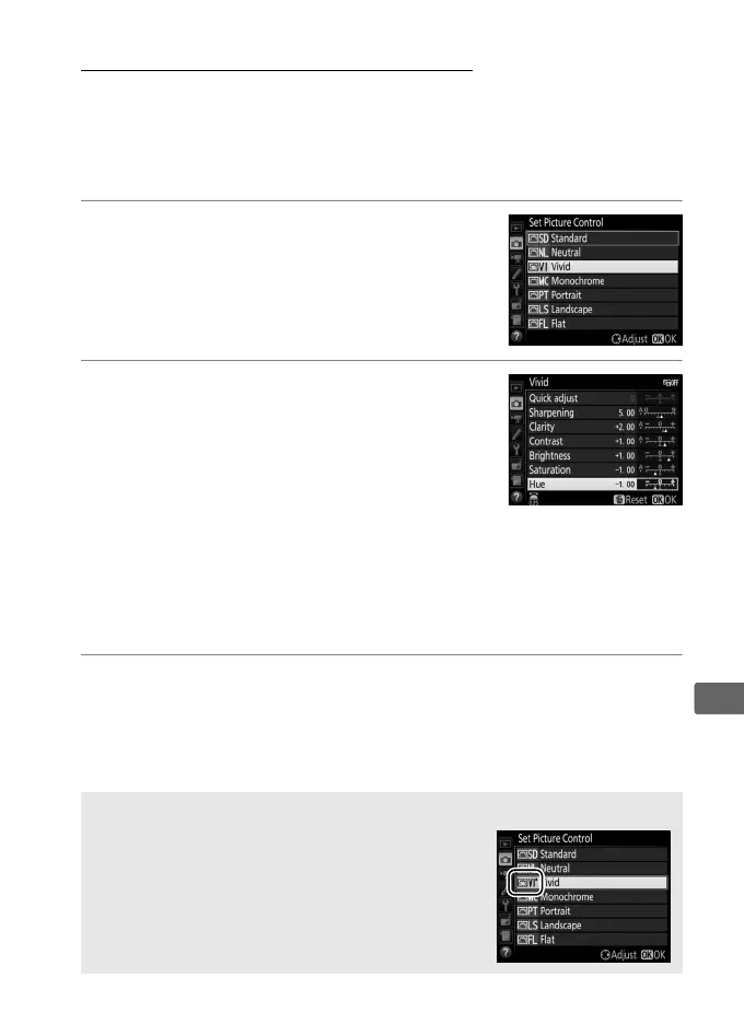 Existing preset or custom Picture Controls (0 184) can be
