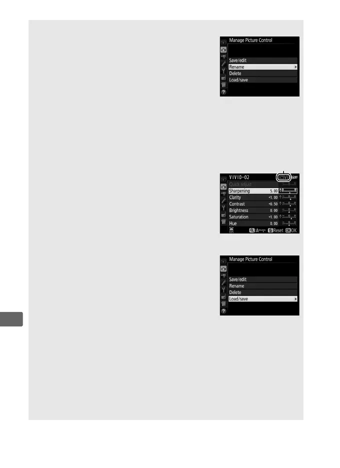 • Copy to camera: Copy custom Picture Controls from the memory card to