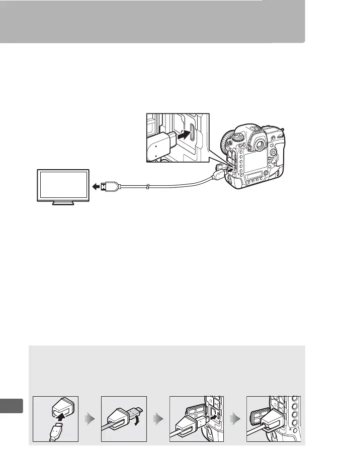 When using the optional Nikon HDMI cable, attach the supplied clip as