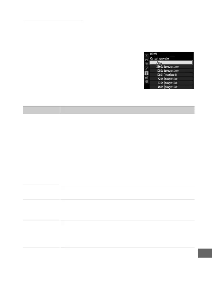The HDMI option in the setup menu (0 365) controls output