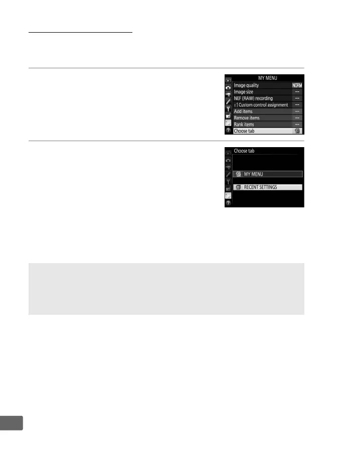 m RECENT SETTINGS for O MY MENU > Choose tab.