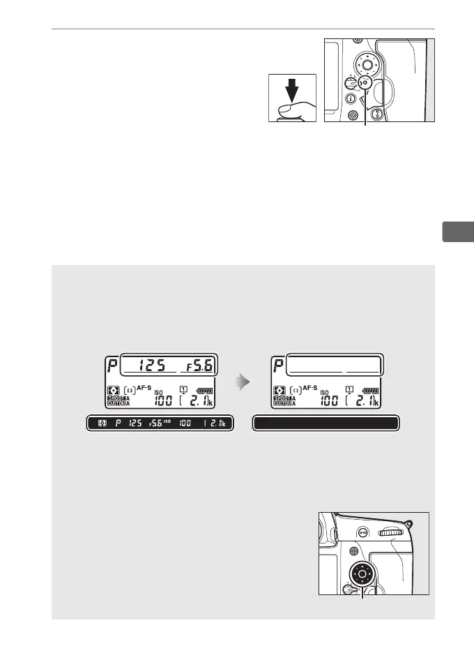 The shutter speed and aperture displays in the top control panel and