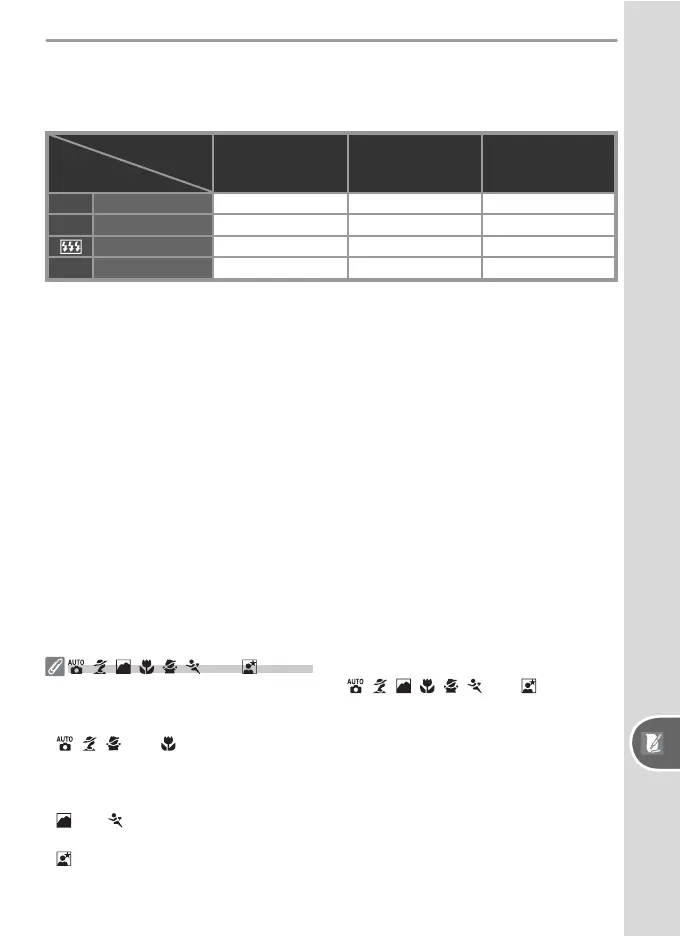 • , , , and modes: Front-curtain sync and red-eye reduction. If off or auto