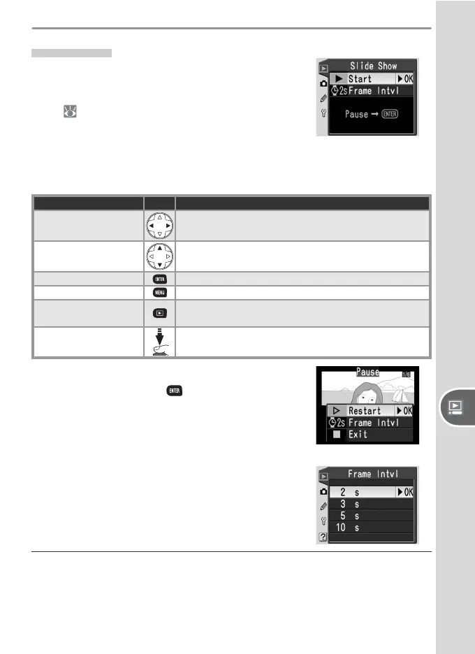 Start the slide show. The following operations can be performed during a