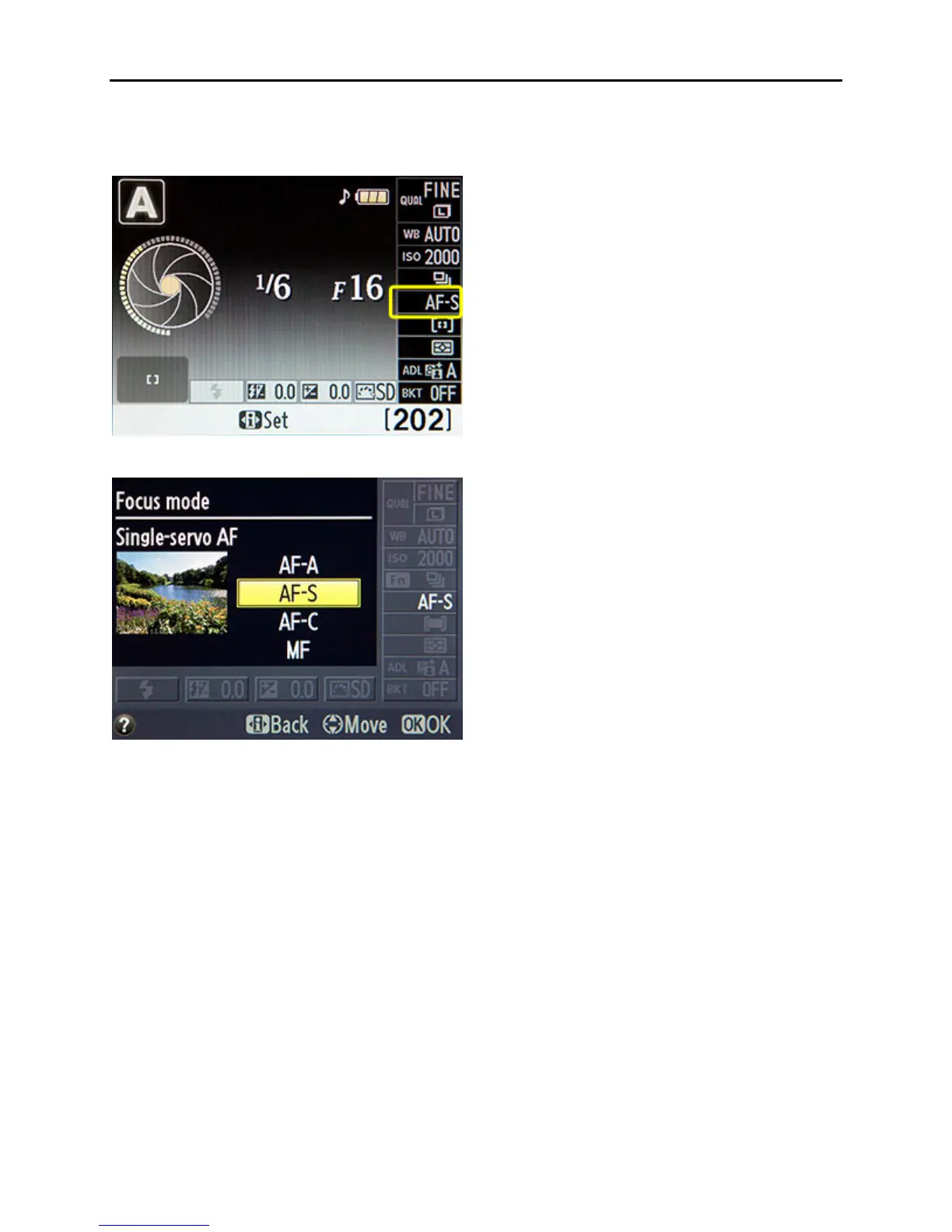 the setting below that, the AF Area Mode setting, and change the AF-Area Mode to Single-point