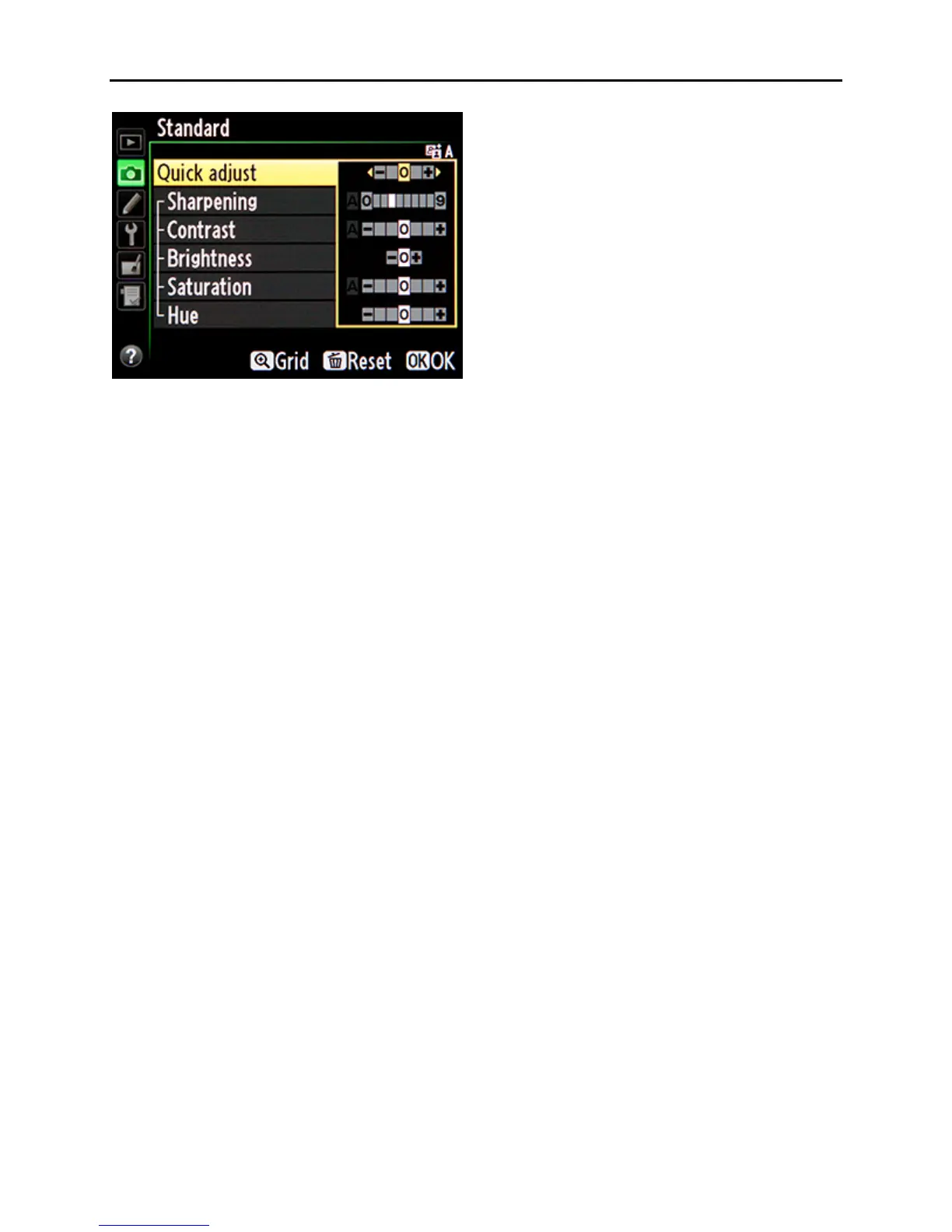 Figure 36 – Modifying Picture Controls Menu
