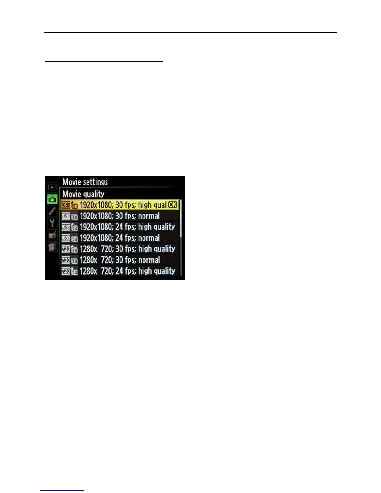 Figure 44 – Movie Settings menu – movie quality and frame rate options