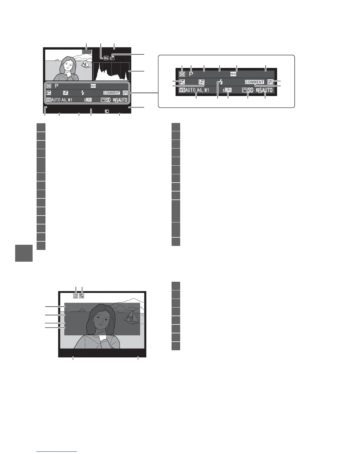 1 Displayed in red if photo was taken with auto ISO sensitivity control on.