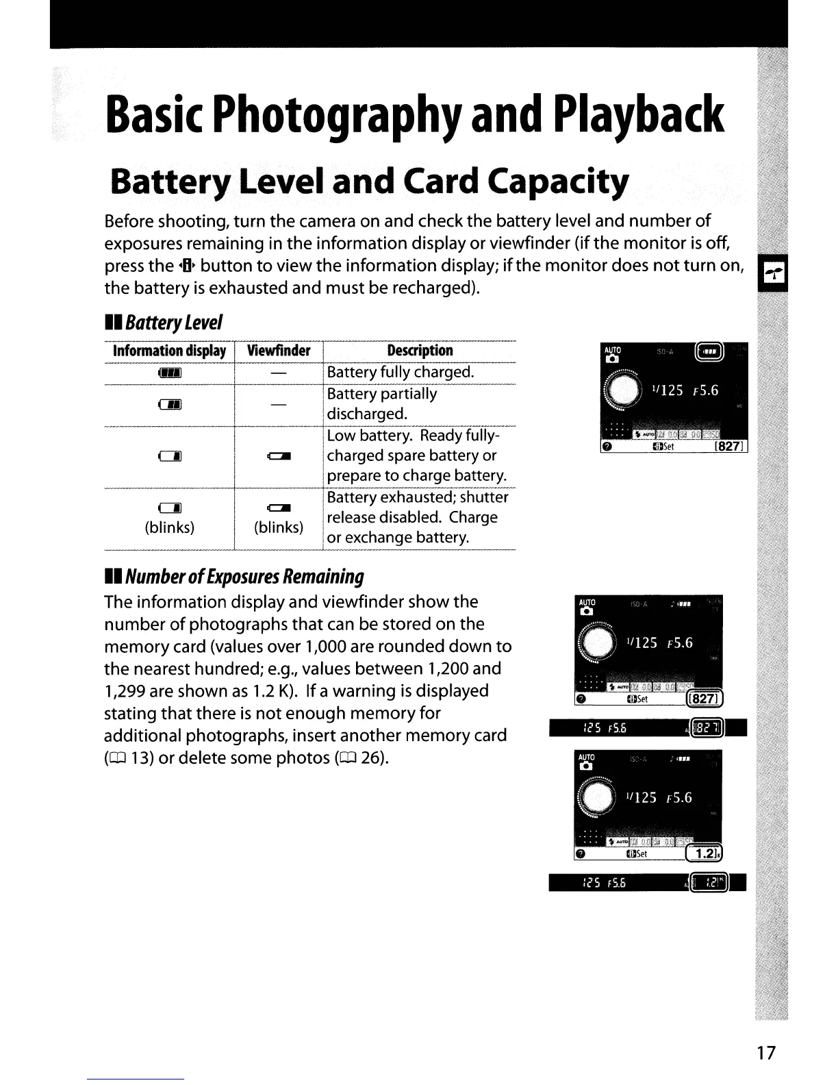 exposures remaining in the information display or viewfinder (if