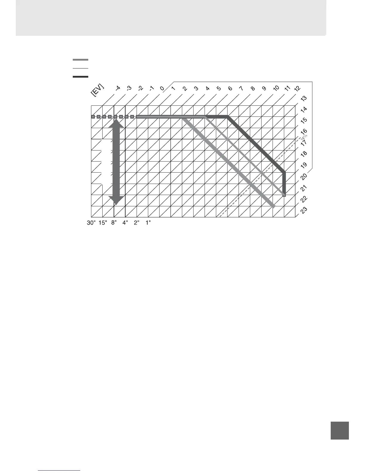 The maximum and minimum values for EV vary with ISO sensitivity; the above graph