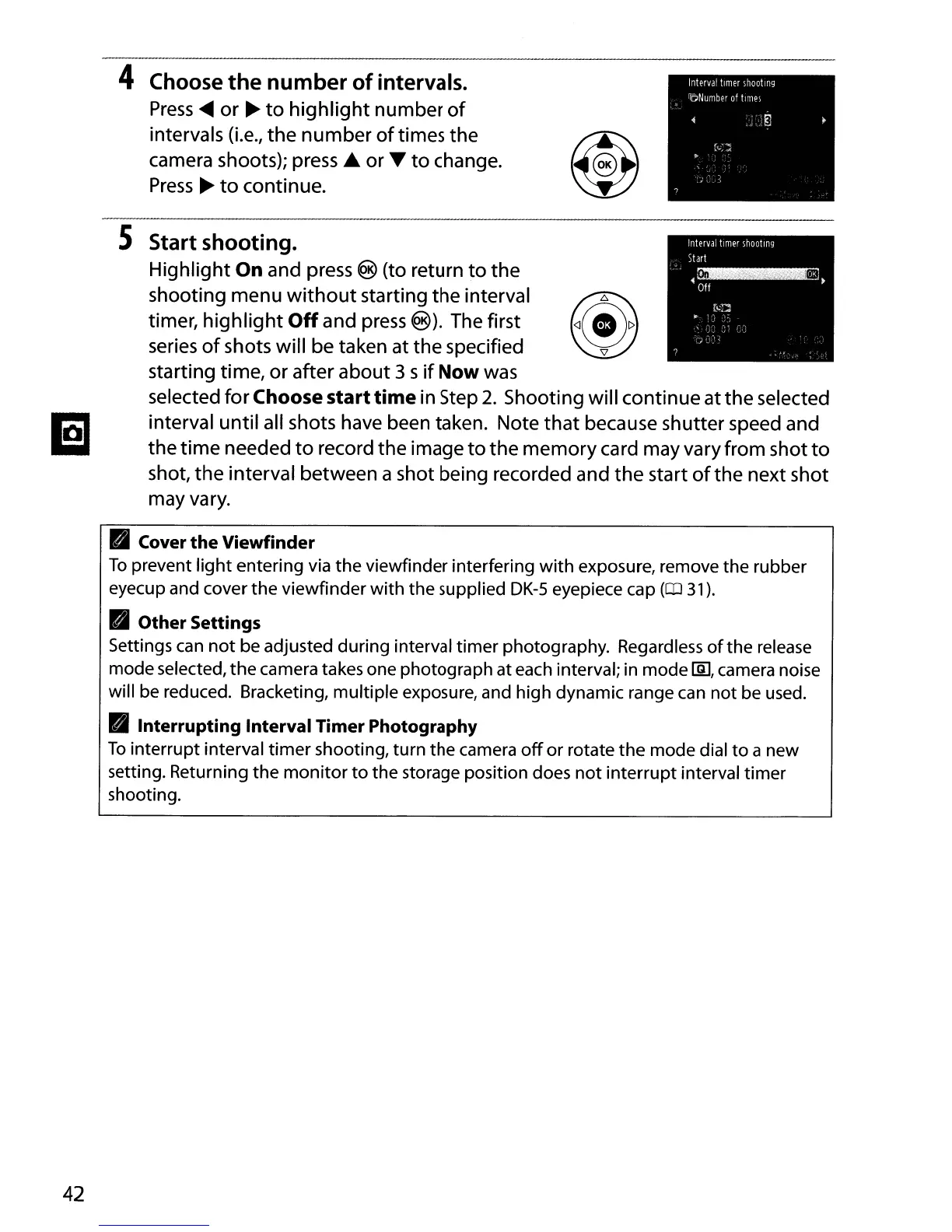camera takes one photograph at each interval; in mode