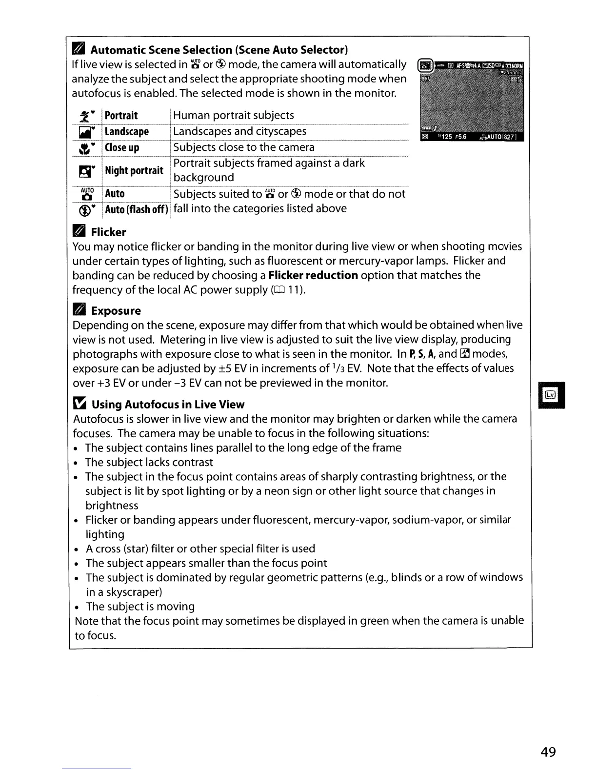 used. Metering in live view
