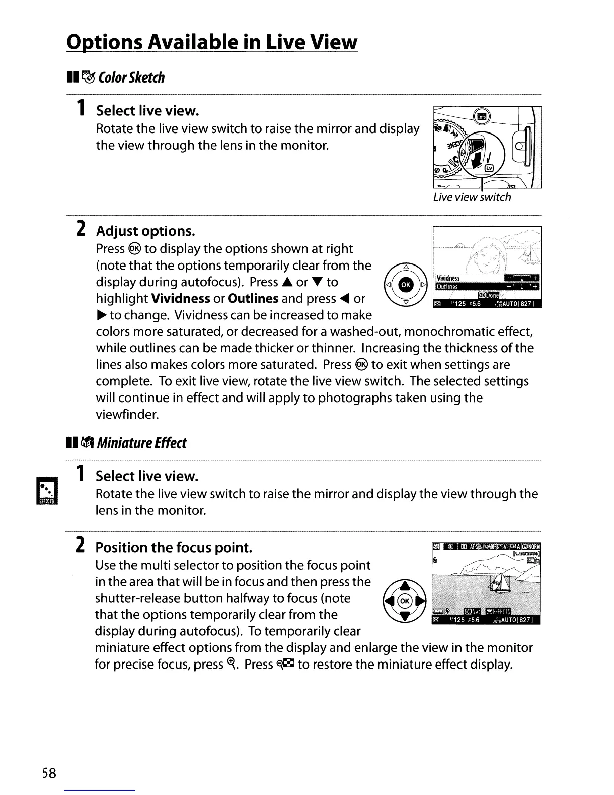 exit live view, rotate the live view switch. The selected settings