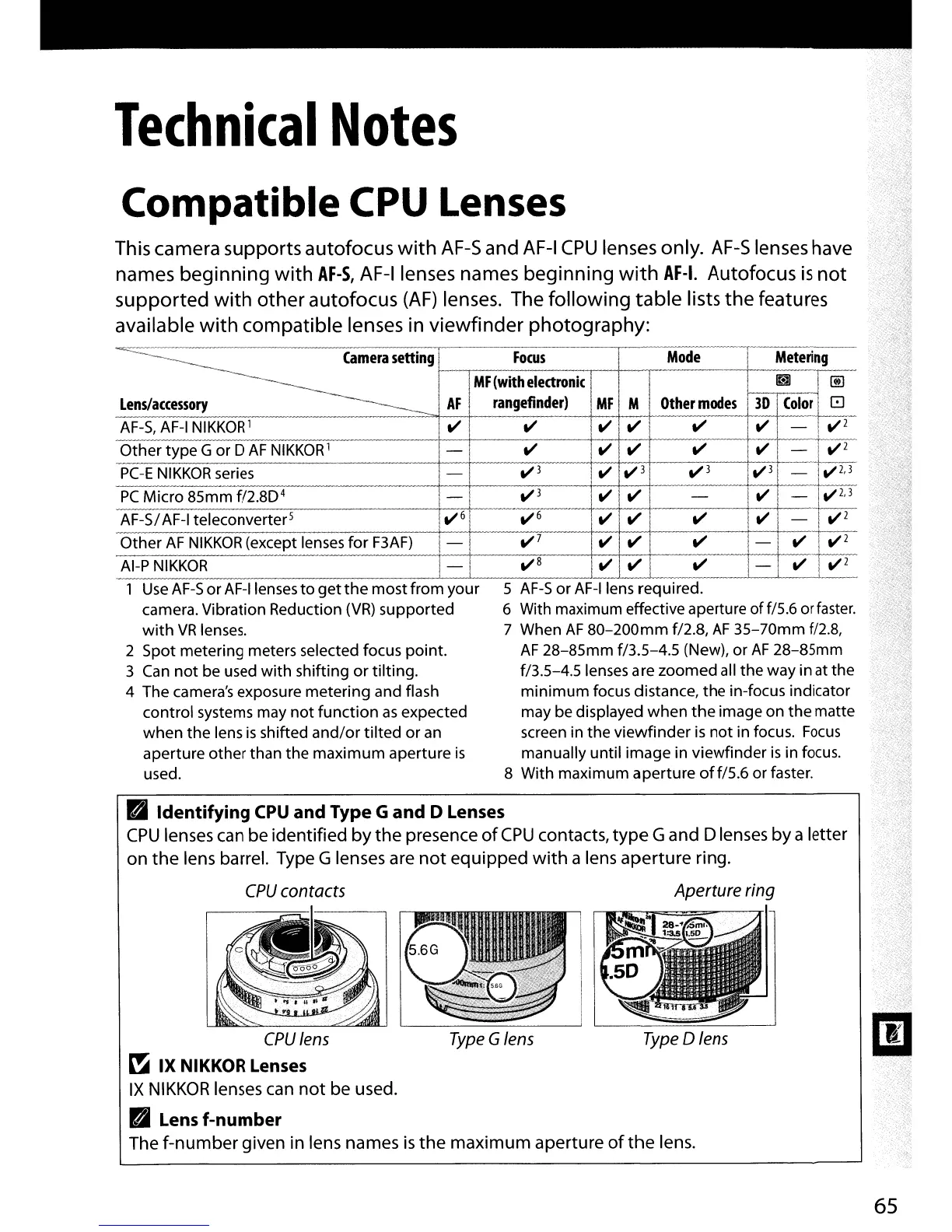 lens barrel. Type G lenses are