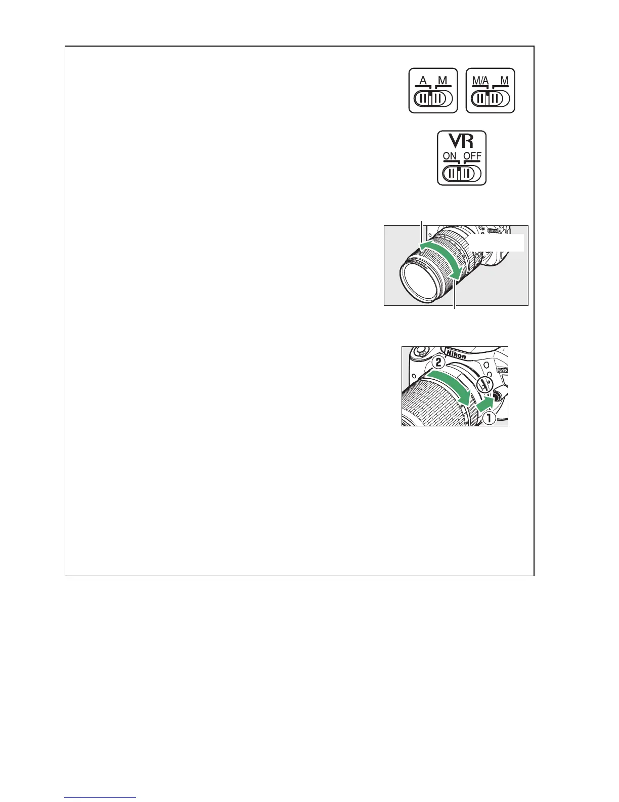 mode switch, slide the switch to A (if the lens has an M/A-M or