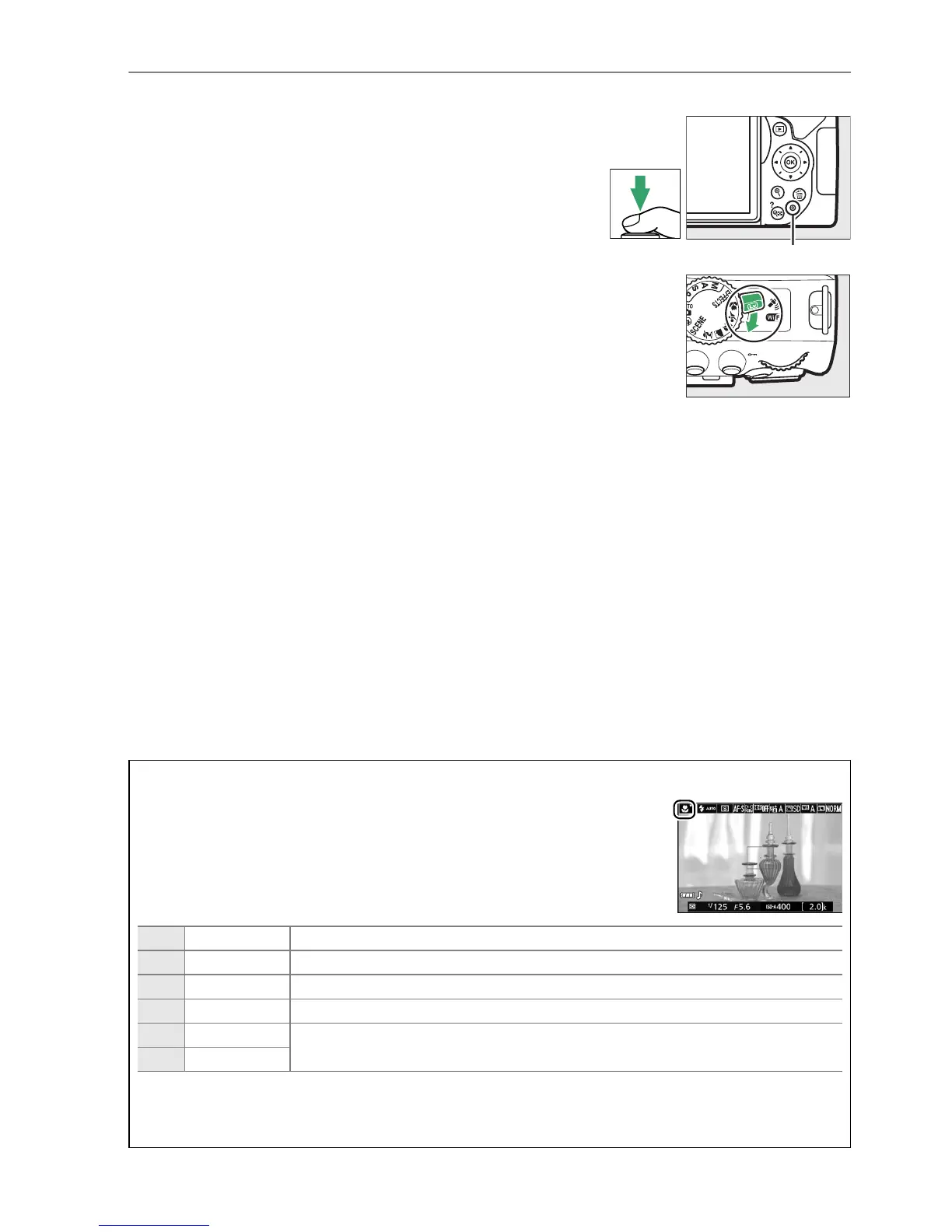 For more information on taking photographs in live view, see page 118.