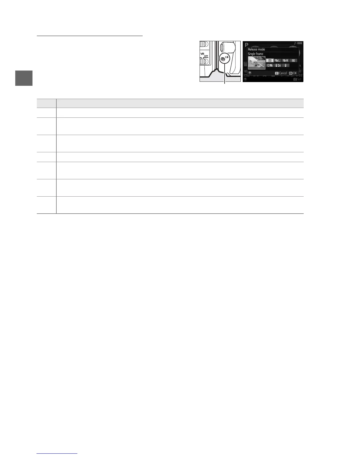 Continuous L: The camera takes photographs at a slow rate while the shutter-release