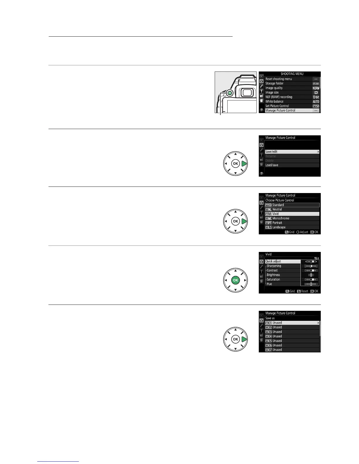 The Picture Controls supplied with the camera can be modified and saved as custom
