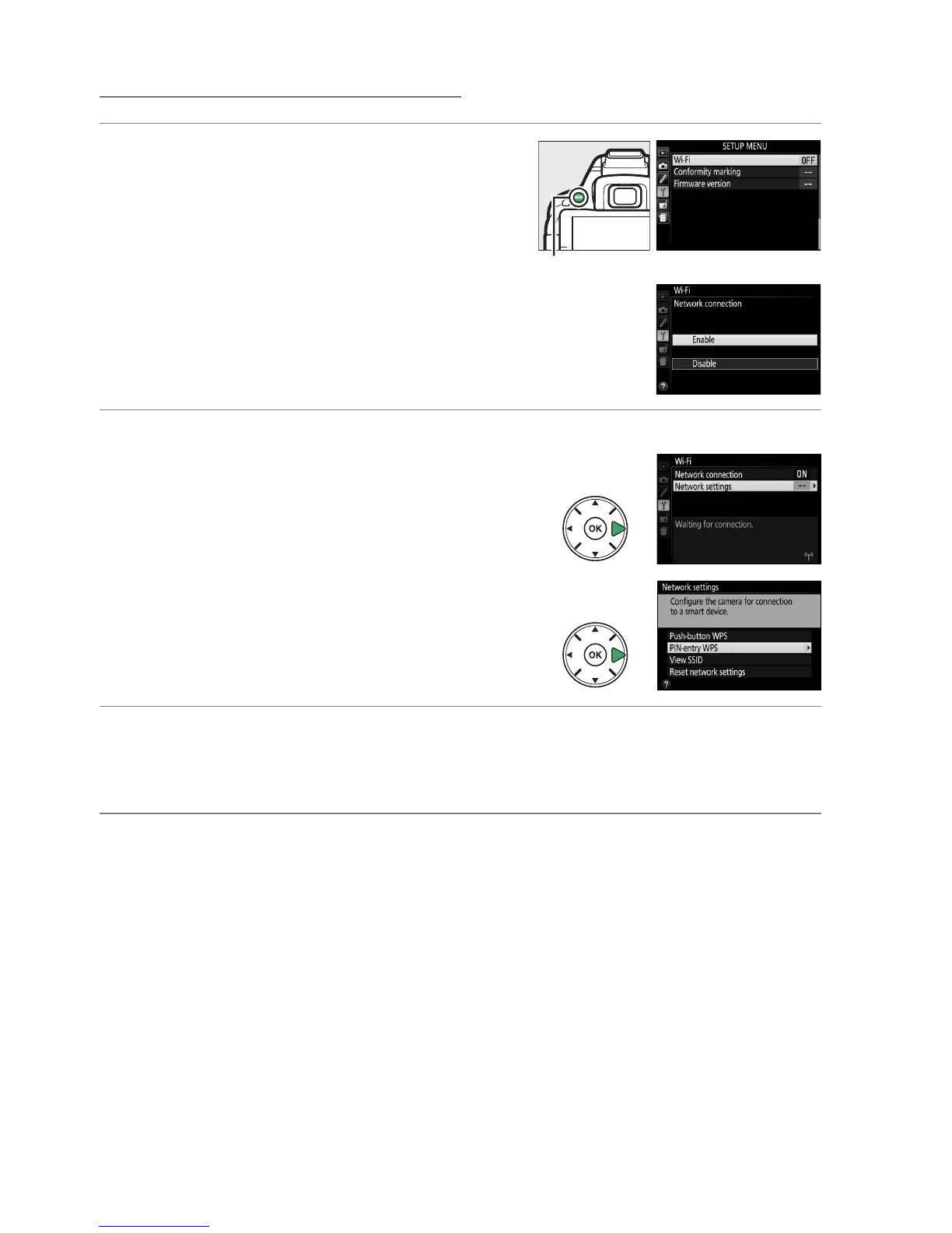 1 Enable the camera’s built-in Wi-Fi.
