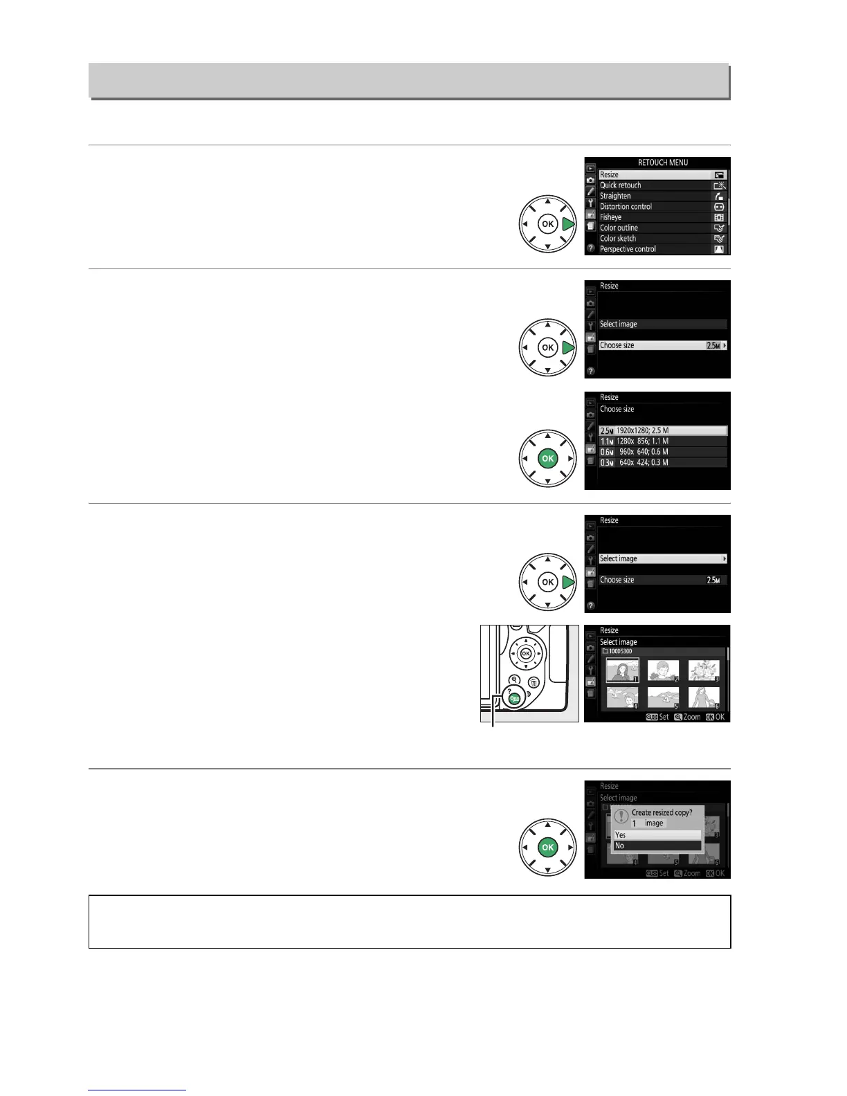 Highlight Resize in the retouch menu and press