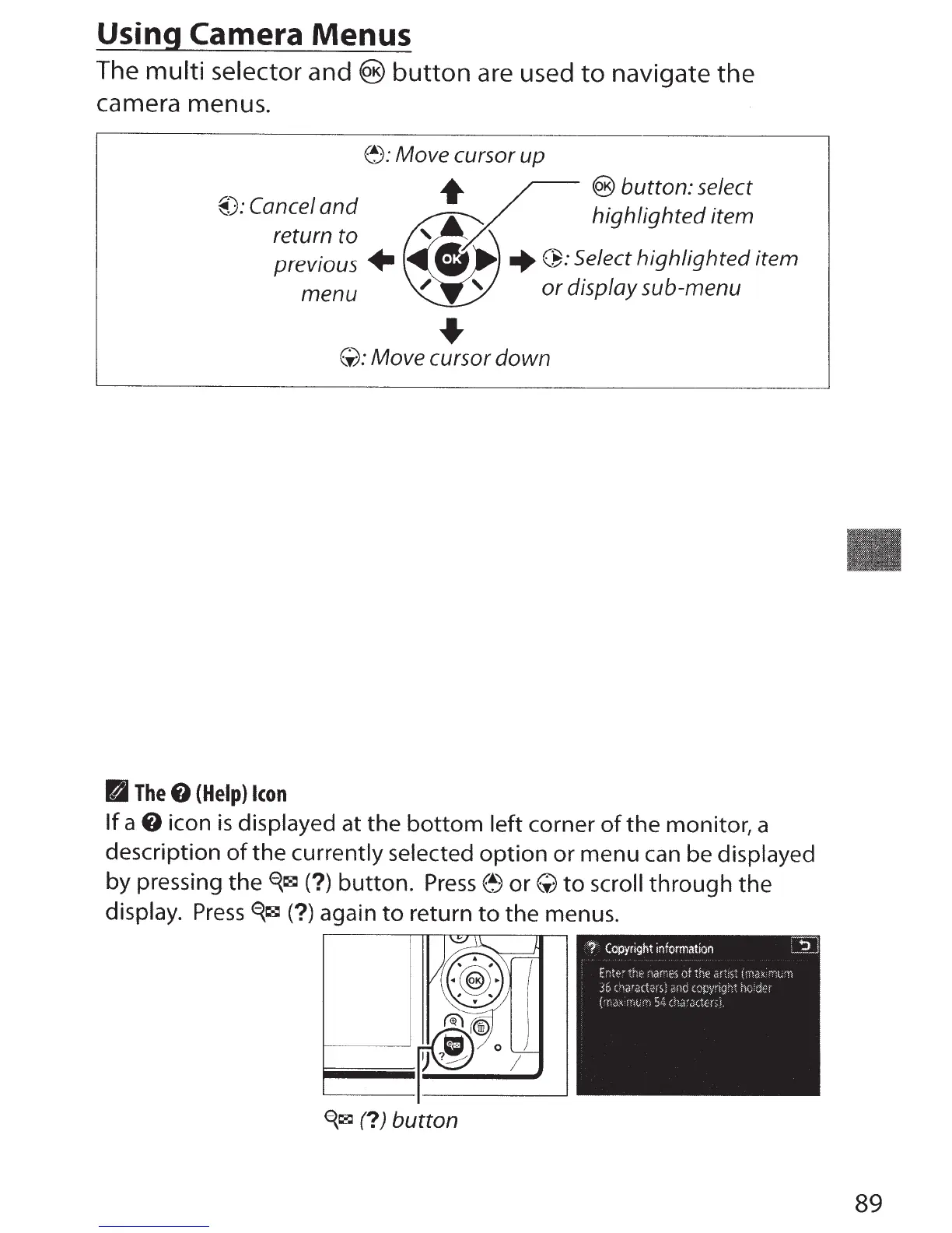 camera menus.