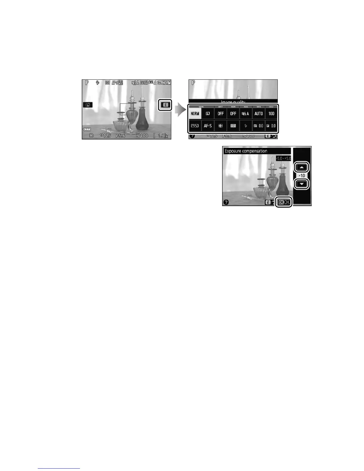 In live view, pressing the P button or tapping the z icon in the