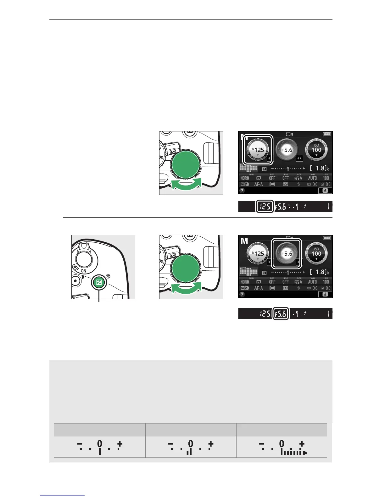 Checking the exposure indicator (see below), adjust shutter