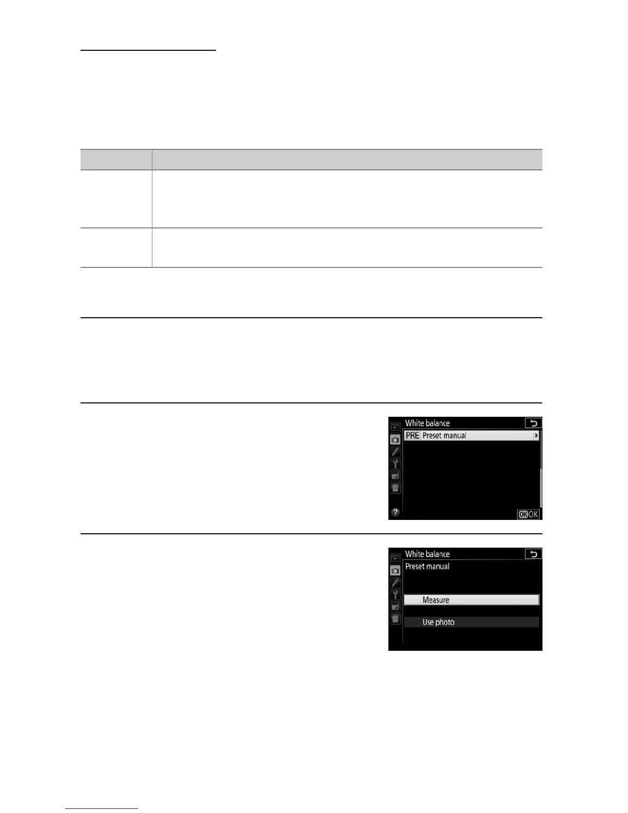 Preset manual is used to record and recall custom white balance