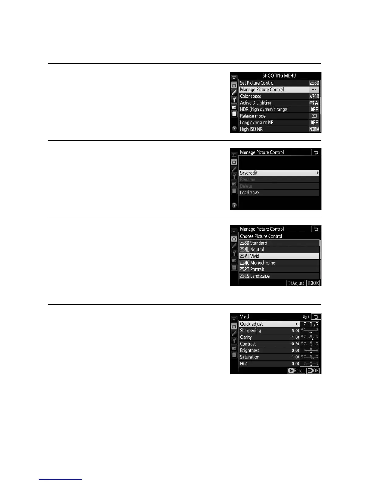 1 Select Manage Picture Control.