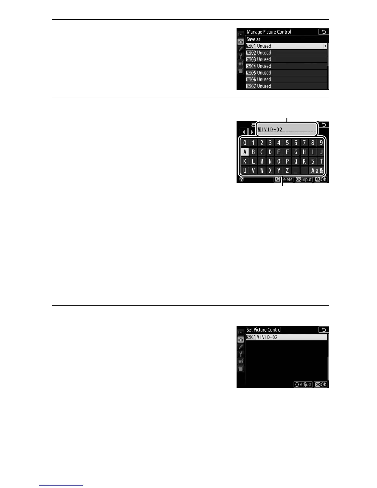 Picture Control (C-1 through C-9) and
