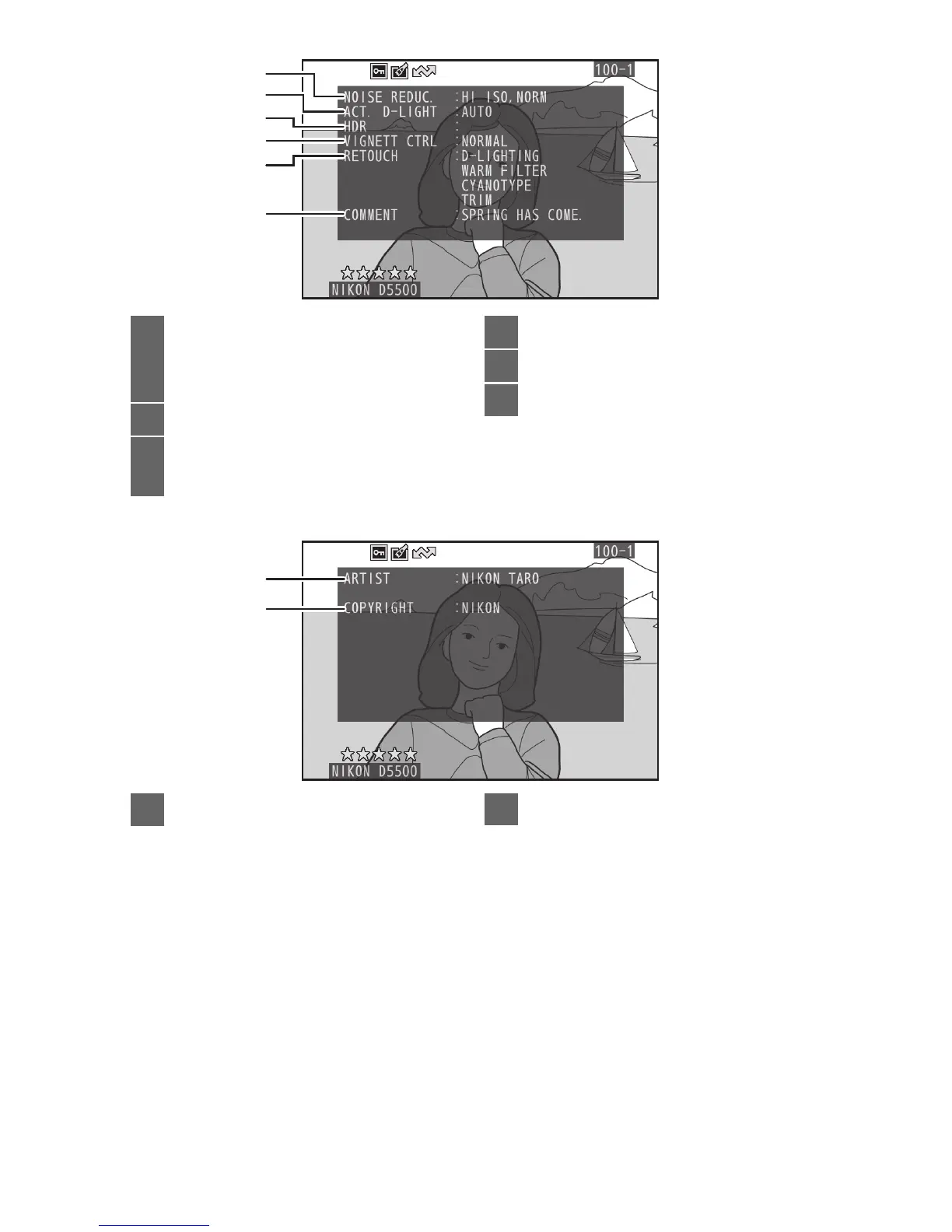 * The fourth page of the shooting data is only displayed if copyright information was recorded