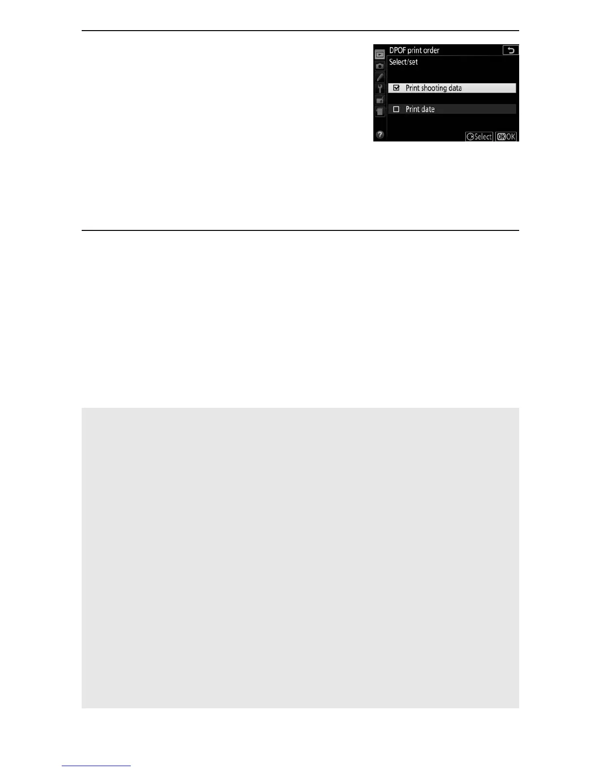 DPOF print date and shooting data options are