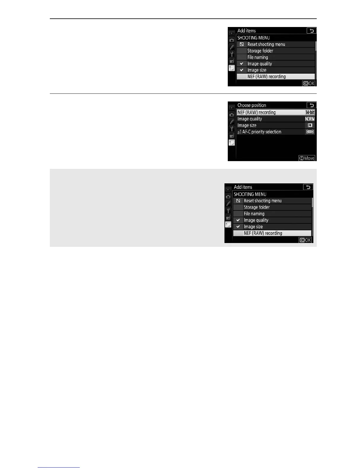 Press 1 or 3 to move the new item up