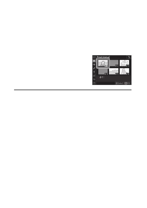 At shipment, presets d-1 through d-6 are set to 5200 K, equivalent to the