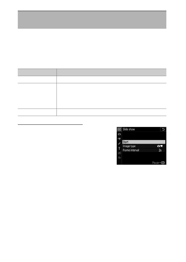 View a slide show; pictures are displayed in the order recorded.
