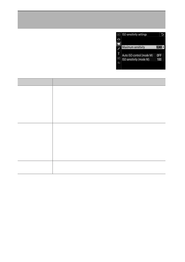 [Off]: Disable auto ISO sensitivity control in mode M