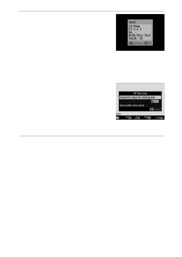 fine-tune on/off] item will be set to [On], enabling AF fine-