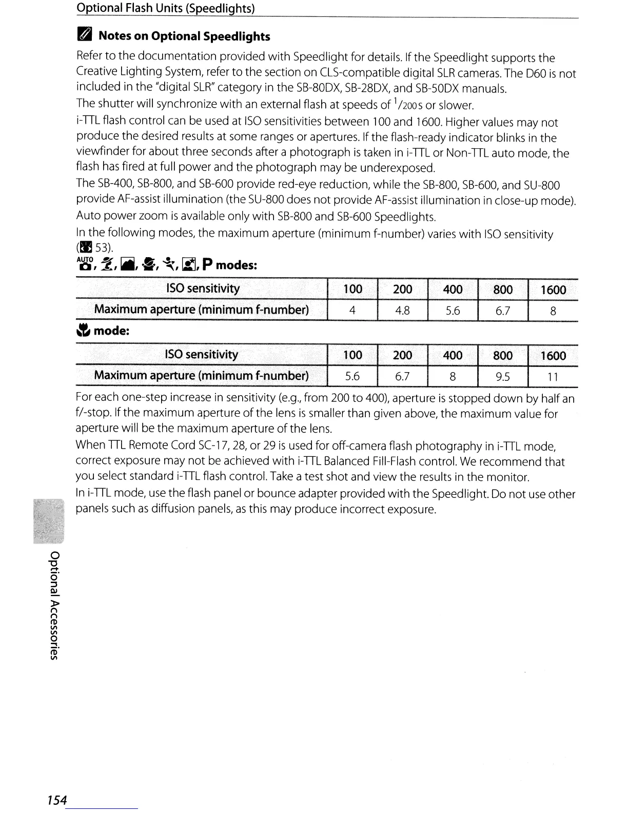 B Notes on Optional Speedlights