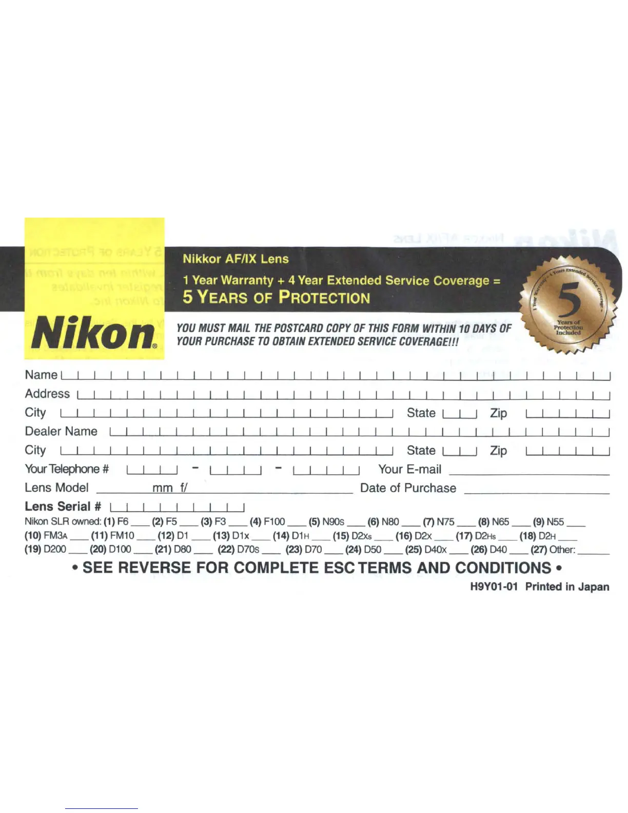 • SEE REVERSE FOR COMPLETE ESC TERMS AND CONDITIONS •