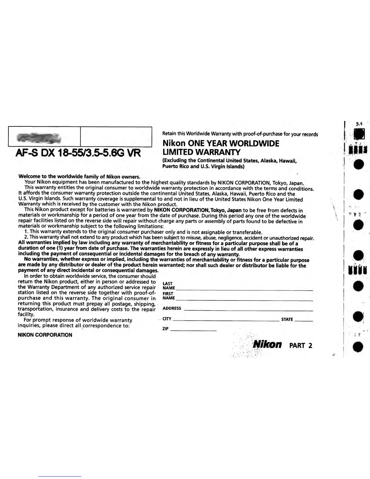 warranted by NIKON CORPORATION,Tokyo, Japan