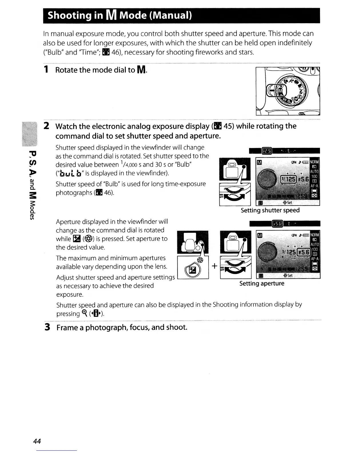 ("Bulb" and 'Time"; 1':l46), necessary for shooting fireworks and